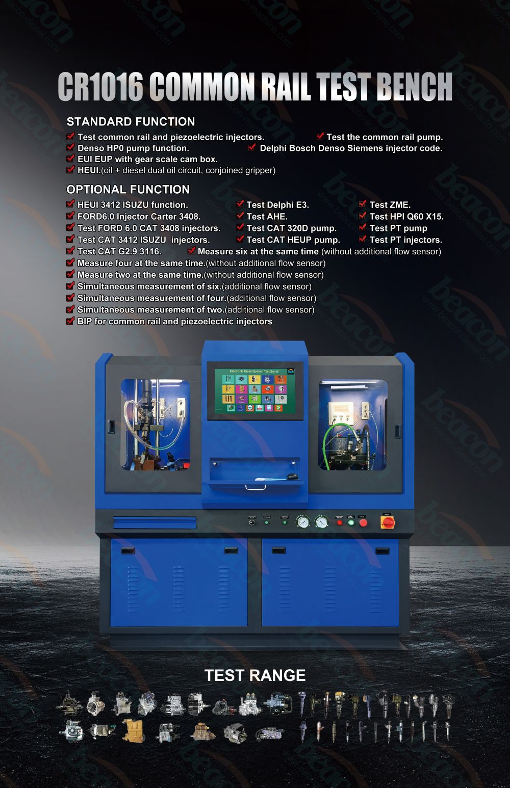 Máquina de prueba de inyectores diésel de riel común CR1016 características opcionales: