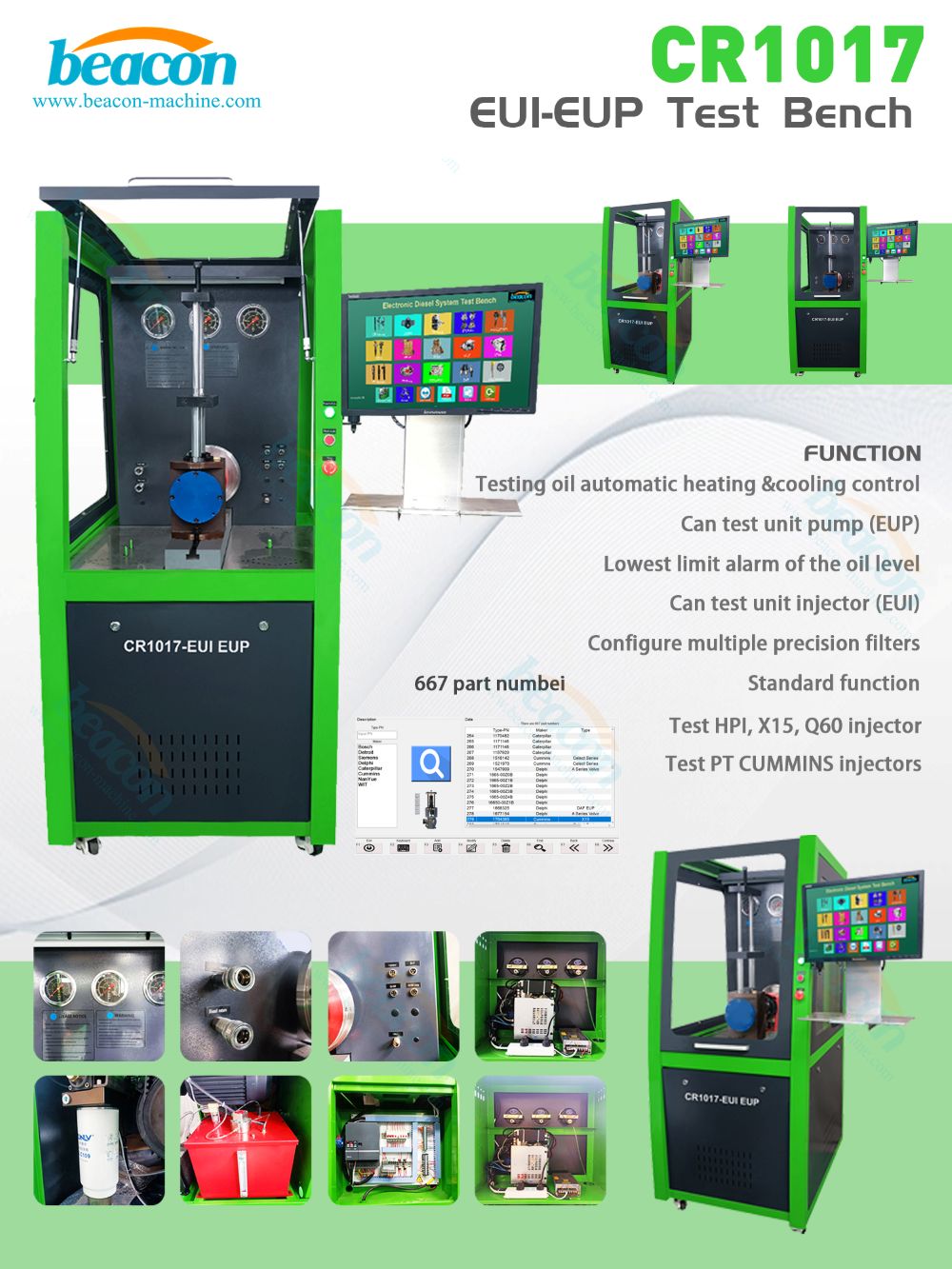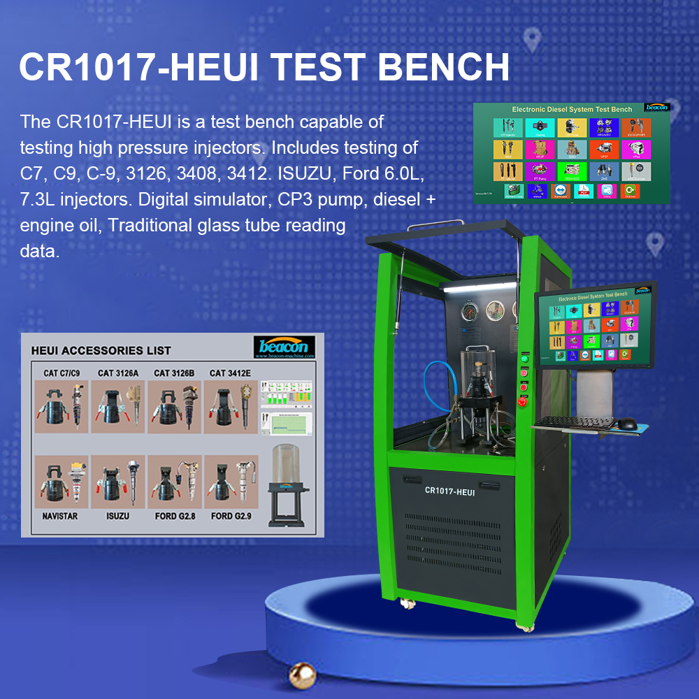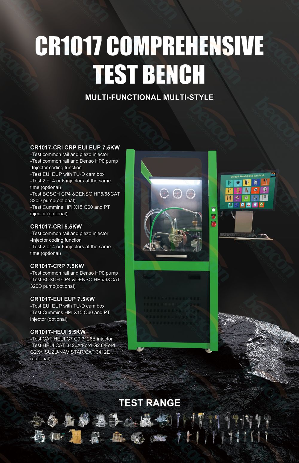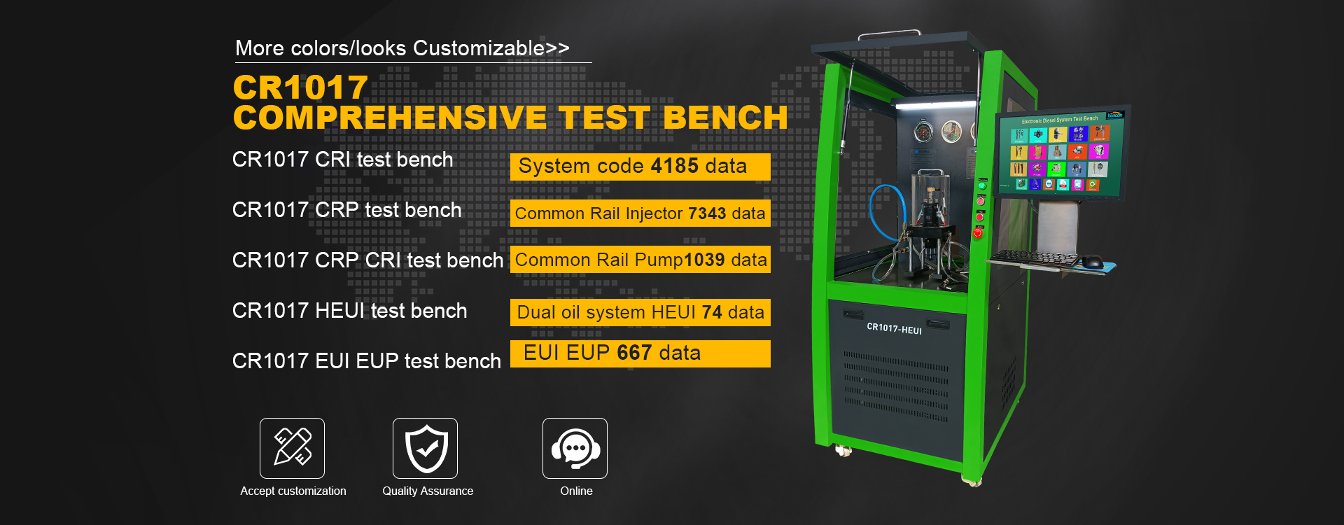 El banco de pruebas common rail CR1017 cuenta con diferentes modelos según sus necesidades de prueba, que pueden probar inyectores y bombas, así como inyectores HEUI e inyectores y bombas EUIEUP