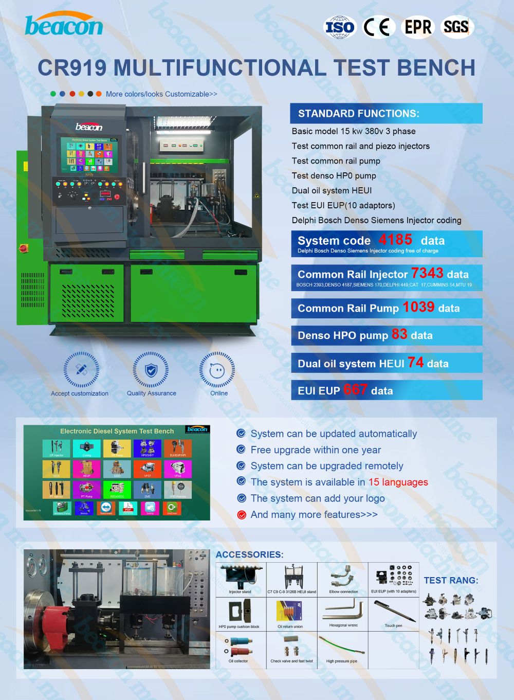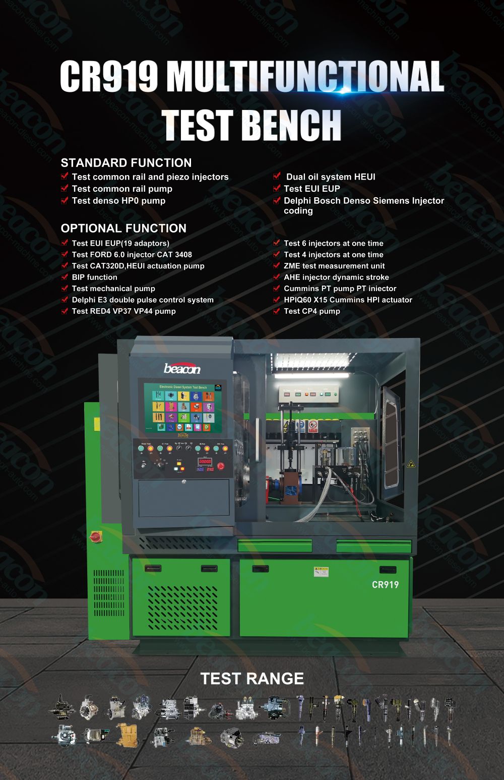 BEACON CR919 Banco de pruebas de inyectores diésel Common Rail Heui Máquina de prueba de calibración de inyectores Crdi EUI EUP HEUI