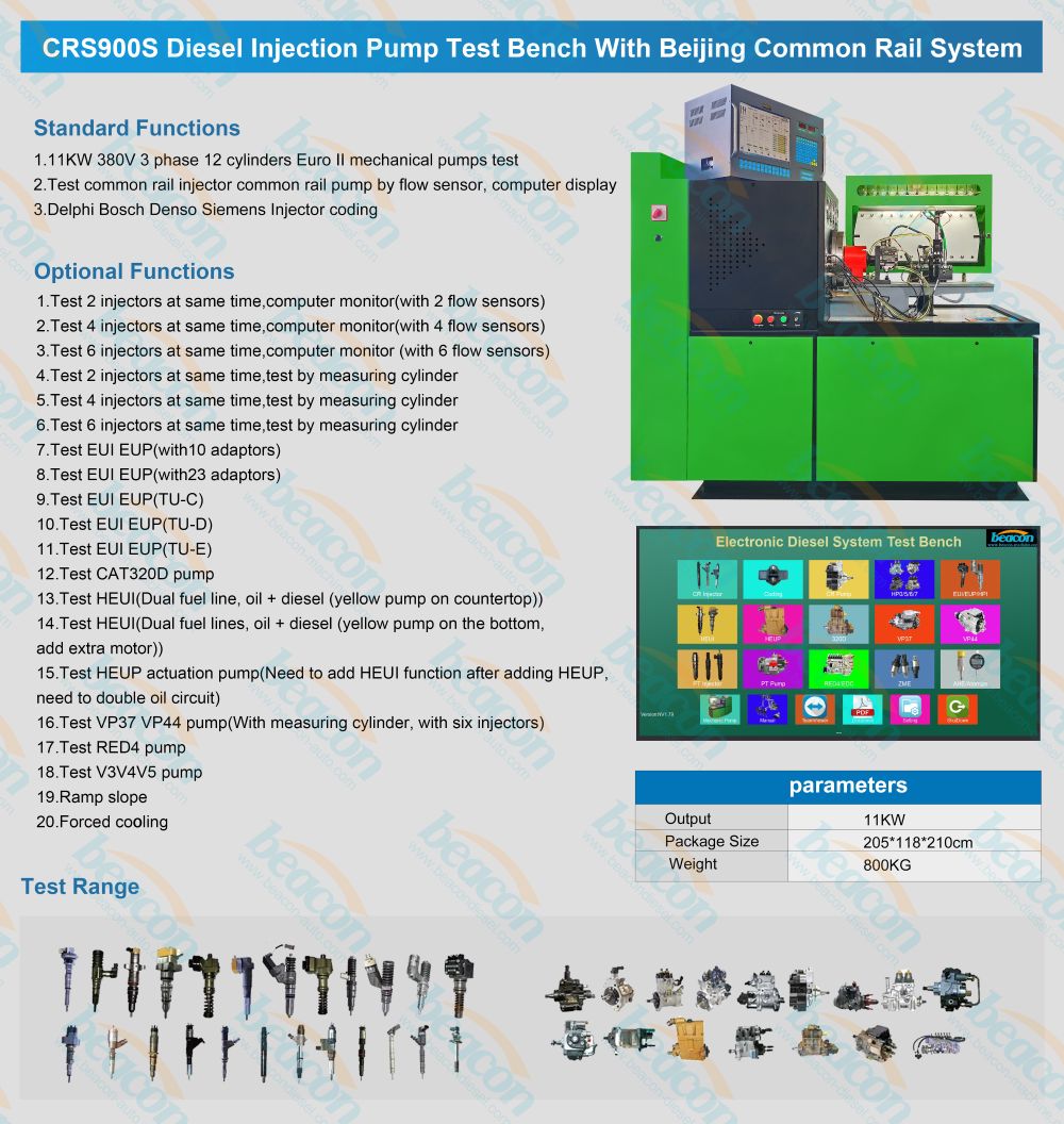 El banco de pruebas multifunción CRS900S puede probar bombas mecánicas y también inyectores y bombas common rail con sistema informático