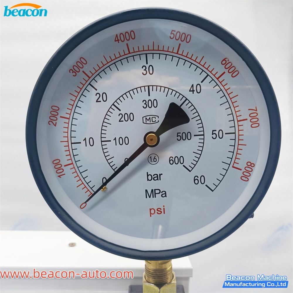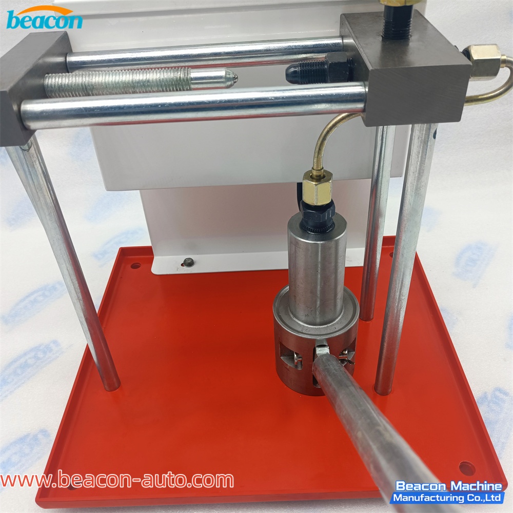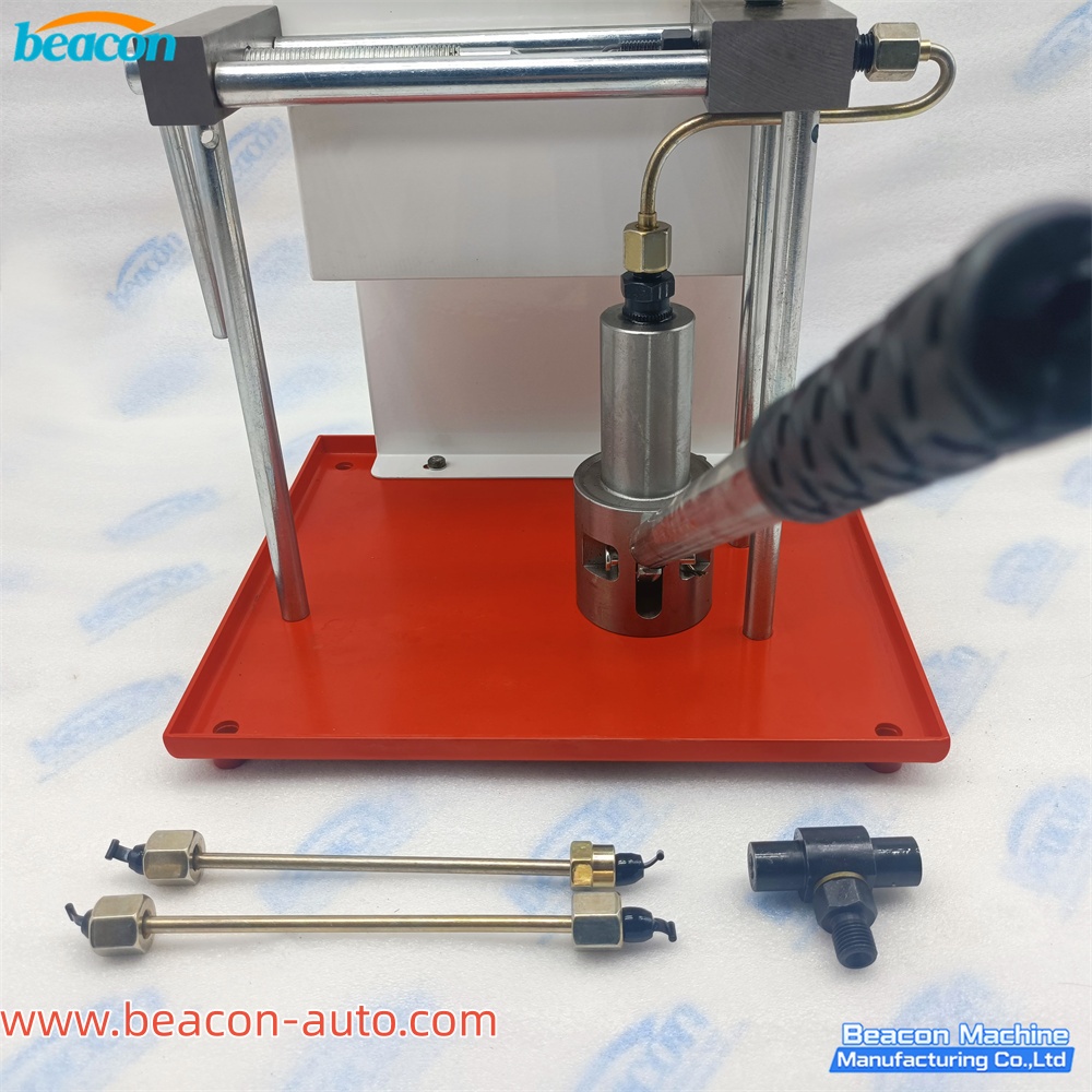 El inyector Common Rail se alimenta de una fuente de combustible de alta presión, que puede ser una bomba manual mecánica, una bomba accionada por motor eléctrico o un amplificador de presión neumático. Este dispositivo de prueba permite verificar el patrón de pulverización de la boquilla, las fugas del inyector y el estado del solenoide.
