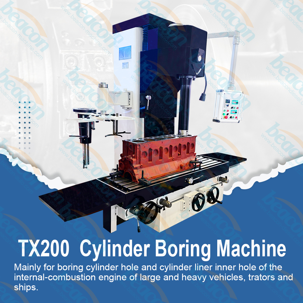 Máquina fresadora de superficies y mandrinadora de cilindros vertical automática TX200. Principalmente para taladrar orificios de cilindros y orificios interiores de camisas de cilindros de motores de combustión interna de vehículos grandes y pesados, tractores y barcos