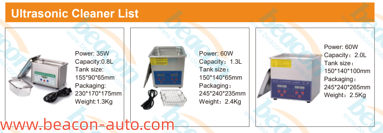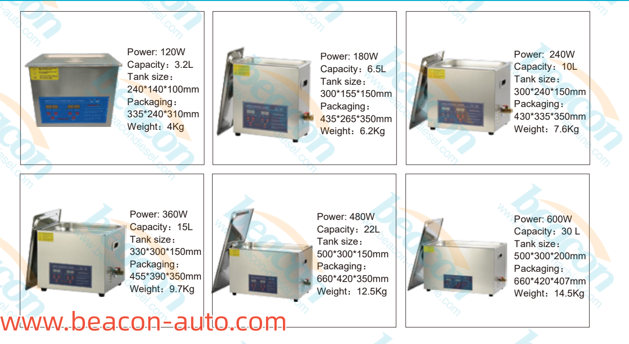 Podemos suministrar limpiadores ultrasónicos de diferentes tamaños y volúmenes, ideales para limpiar inyectores, bombas, motores y otras piezas de repuesto diésel. Disponemos de modelos con capacidades desde 0,8 L hasta 1500 L.